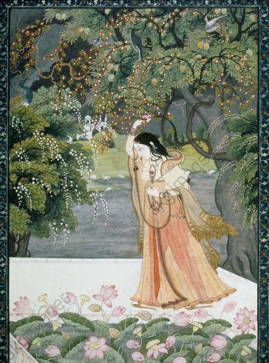 She cast off her bangles, the pearls scattering across the floor like forsaken stars, their glimmer and beauty wasted on a night with no beloved.